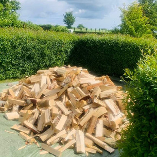 Och igår morse fick vi hem ett par kubik bastu-ved som vi skyndade oss att stapla under tak eftersom det småregnar lite varje dag. Det gäller ju att hålla veden så torr det går.